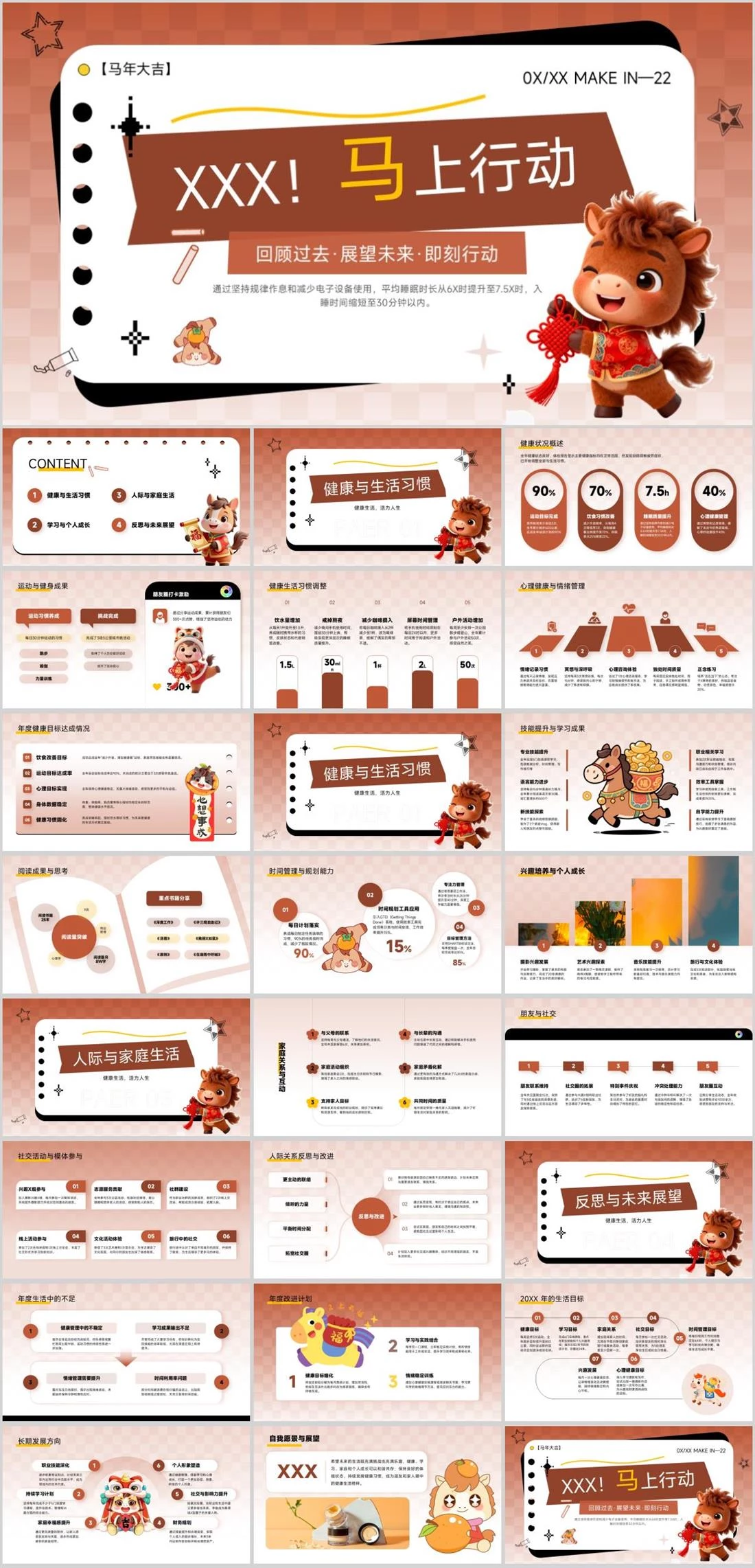 回顾过去·展望未来·即刻行动XXX!马上行动通过坚持规律作息和减少电子设备使用,平均睡眠时长从6X时提升至7.5X时,入睡时间缩短至30分钟以内。0X/XX MAKE IN—22【马年大吉】年终总结,2058,