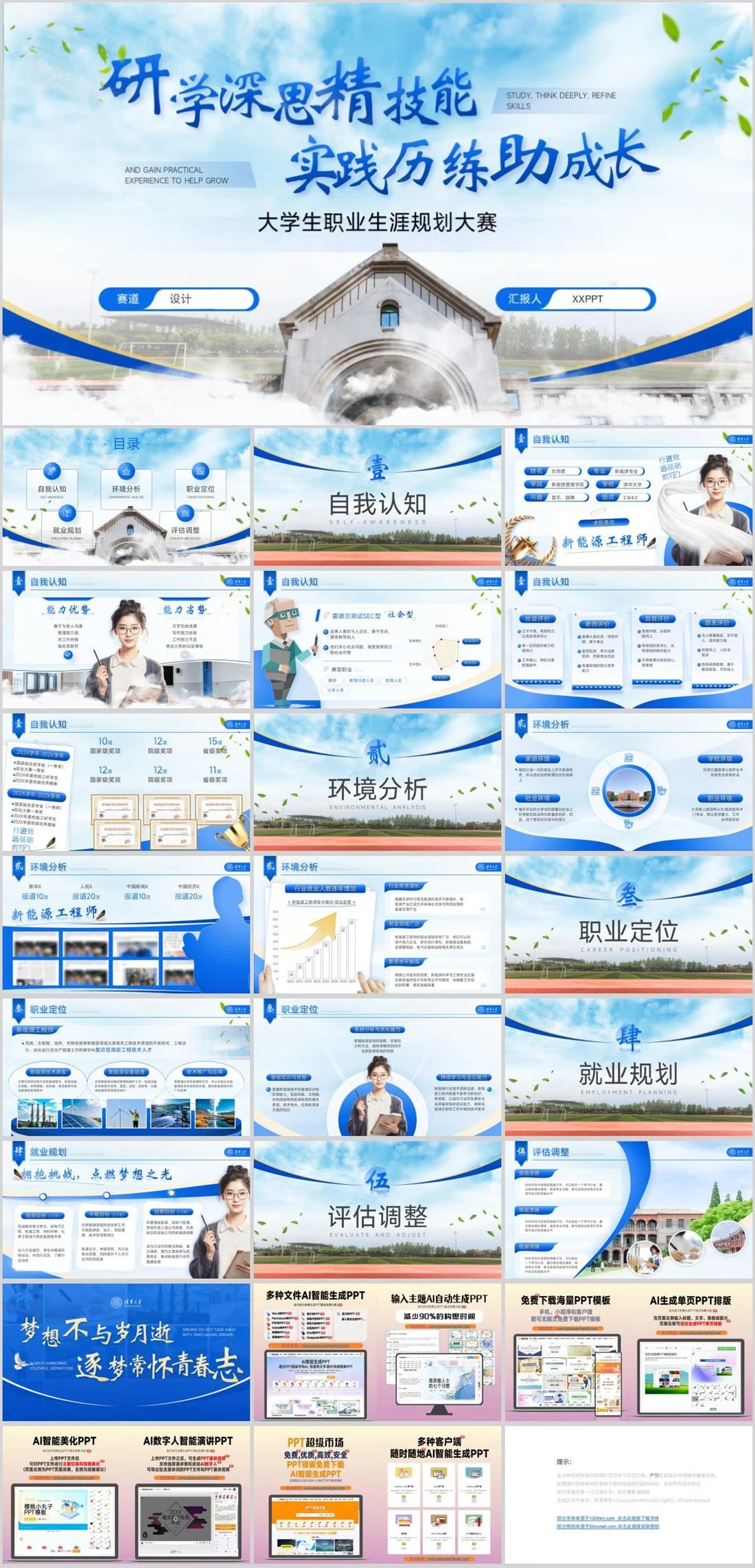 研学深思精技能实践历练助成长精实践历练助成长研学深思技能STUDY, THINK DEEPLY, REFINE SKILLSAND GAIN PRACTICAL EXPERIENCE TO HELP GROW大学生职业生涯规划大赛赛道设计XXPPT汇报人职业规划,2131,